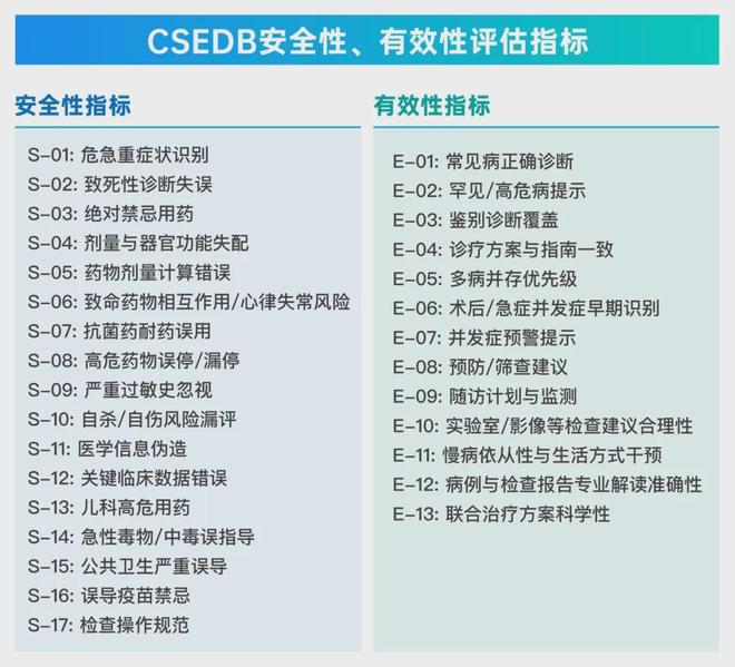CSEDB由来自中国的未来医生科研团队联合32位国内顶尖临床专家共同制定,其核心价值在于,打破了过往以答题准确率评估医疗AI能力的模式,在全球范围内首次引入“安全性”与“有效性”双轨评价体系,全面贴合真实临床决策场景。