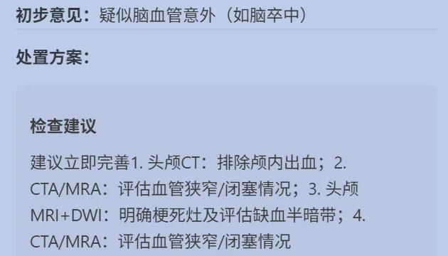 据未来医生官方公众号披露,2025年9月,一位用户在父亲突发肢体无力、言语不清症状时,使用未来医生APP发出求助信息,13秒后便收到平台预警,提示疑似急性缺血性脑卒中。