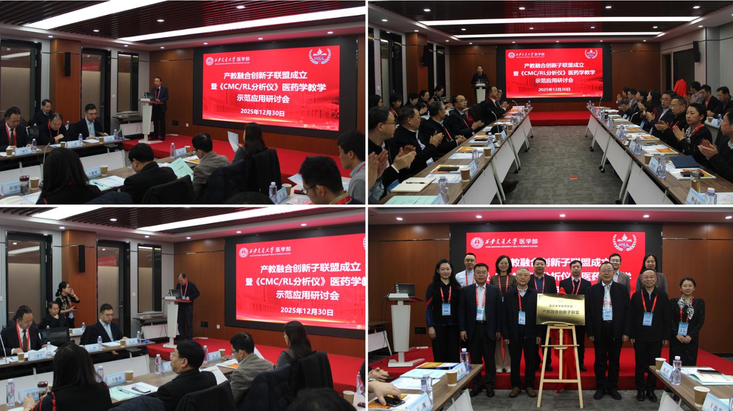 为深入贯彻国家关于科技创新与产教融合的战略部署,推动原创科研仪器与医学教育深度融合,2025年12月30日,“西部医学教育联盟产教融合创新子联盟成立仪式暨《CMC/RL分析仪》医药学教学示范应用研讨会”在创新港举行。本次会议由西安交通大学医学部、西部医学教育联盟主办,西安交通大学国家医学攻关产教融合创新平台、Journal of Pharmaceutical Analysis 编辑部承办,旨在共同探索科技创新与医学教育深度融合的新路径,构建协同育人新机制,助力拔尖创新医药学人才的自主培养。