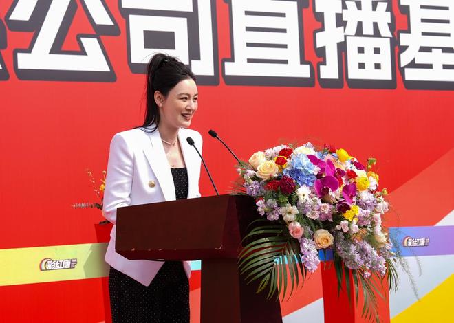 仪式现场,唐艺董事长代表彩红唐传媒致欢迎辞,介绍了直播基地的基础情况及未来发展。她表示,江阴是一座连续多年领跑全国县域经济的城市;新桥镇是时尚产业重镇、文旅融合标杆。2025年,她在海澜飞马水城梦想大舞台开启了首场直播,并与海澜结缘,双方理念契合,进而达成了优势互补,相互赋能的深度合作意向。未来,彩红唐将以敬畏之心深耕内容,以赤诚之心服务产业,以开放之心汇聚人才,为中国直播经济贡献力量。